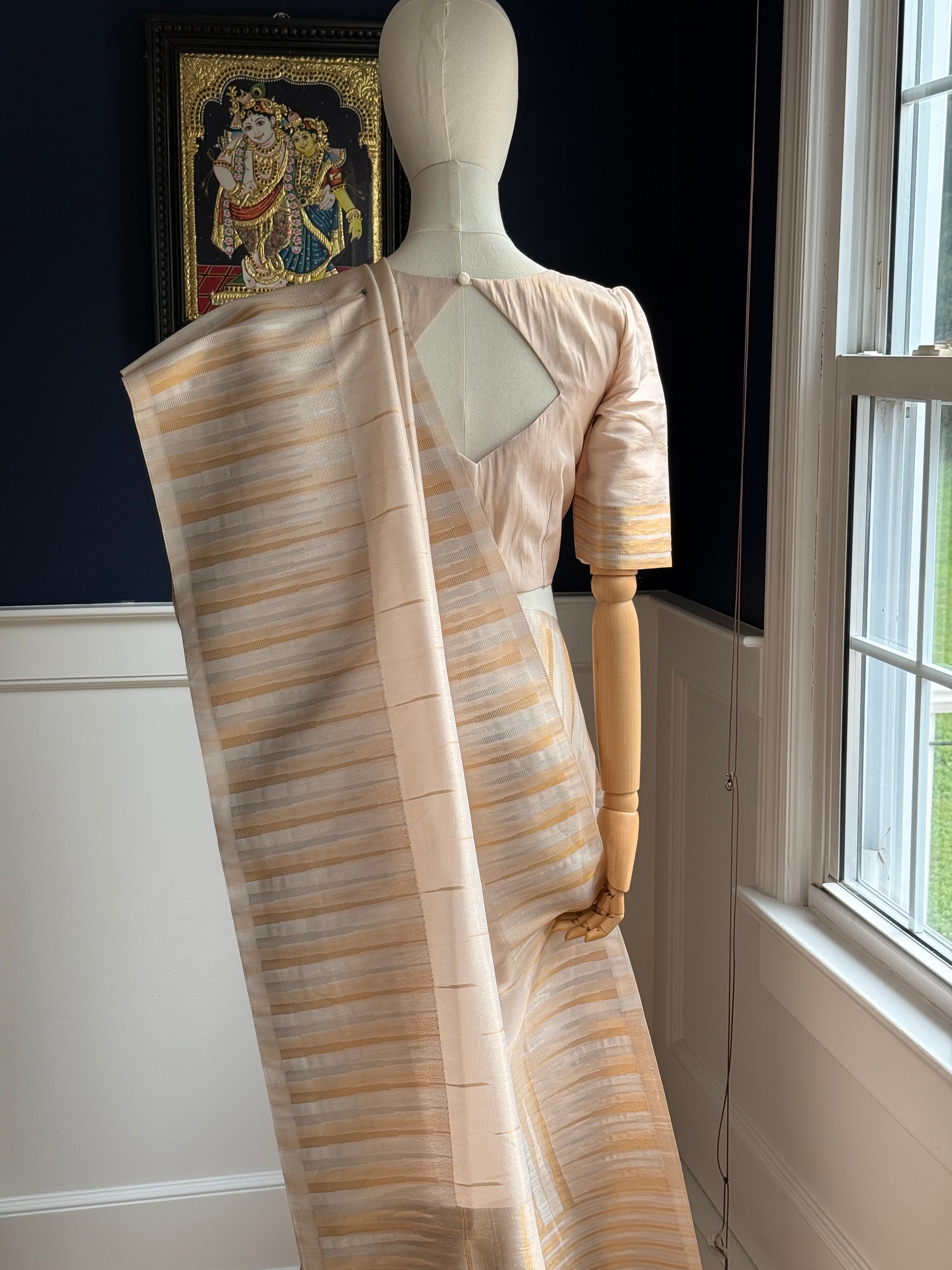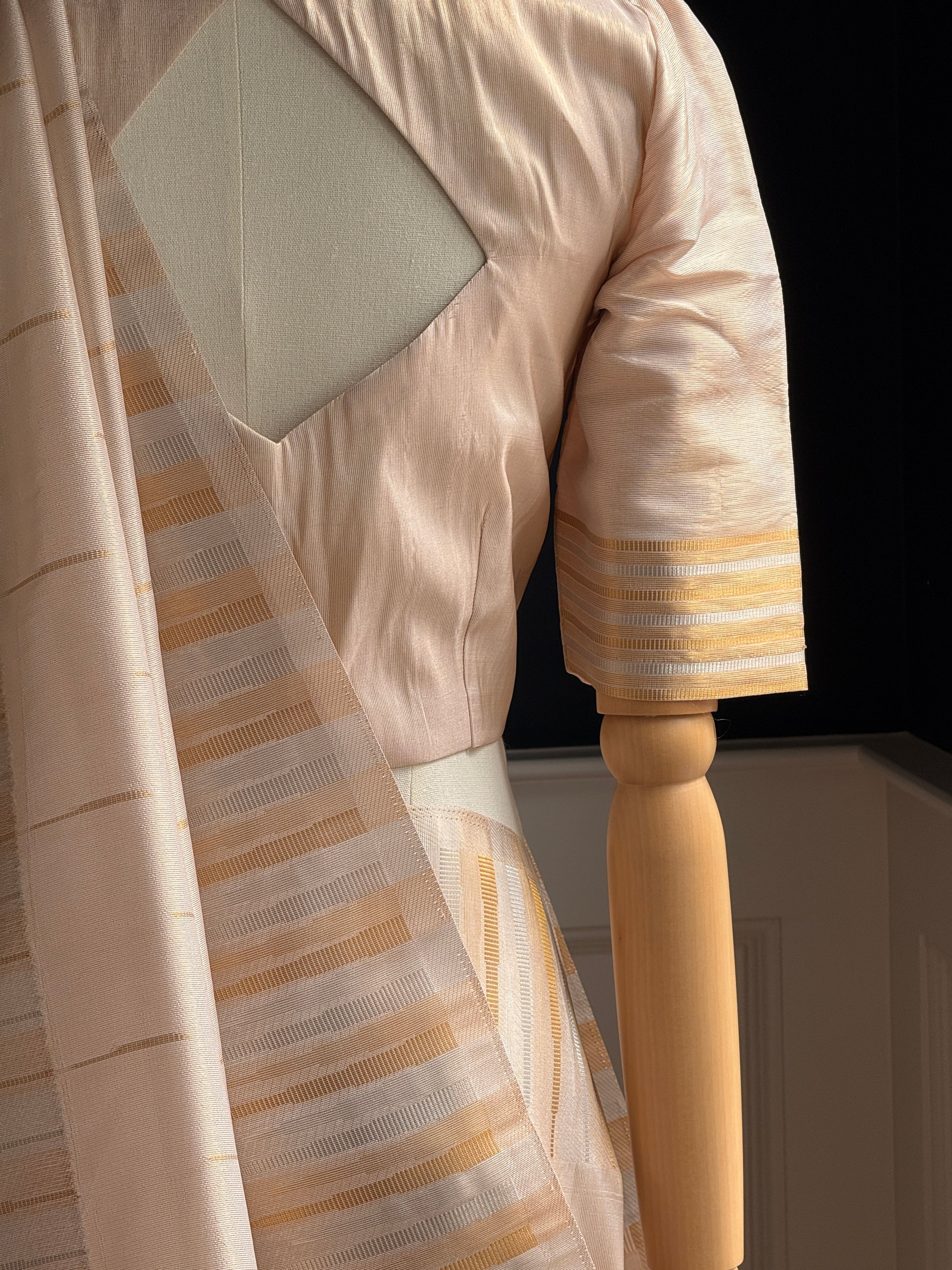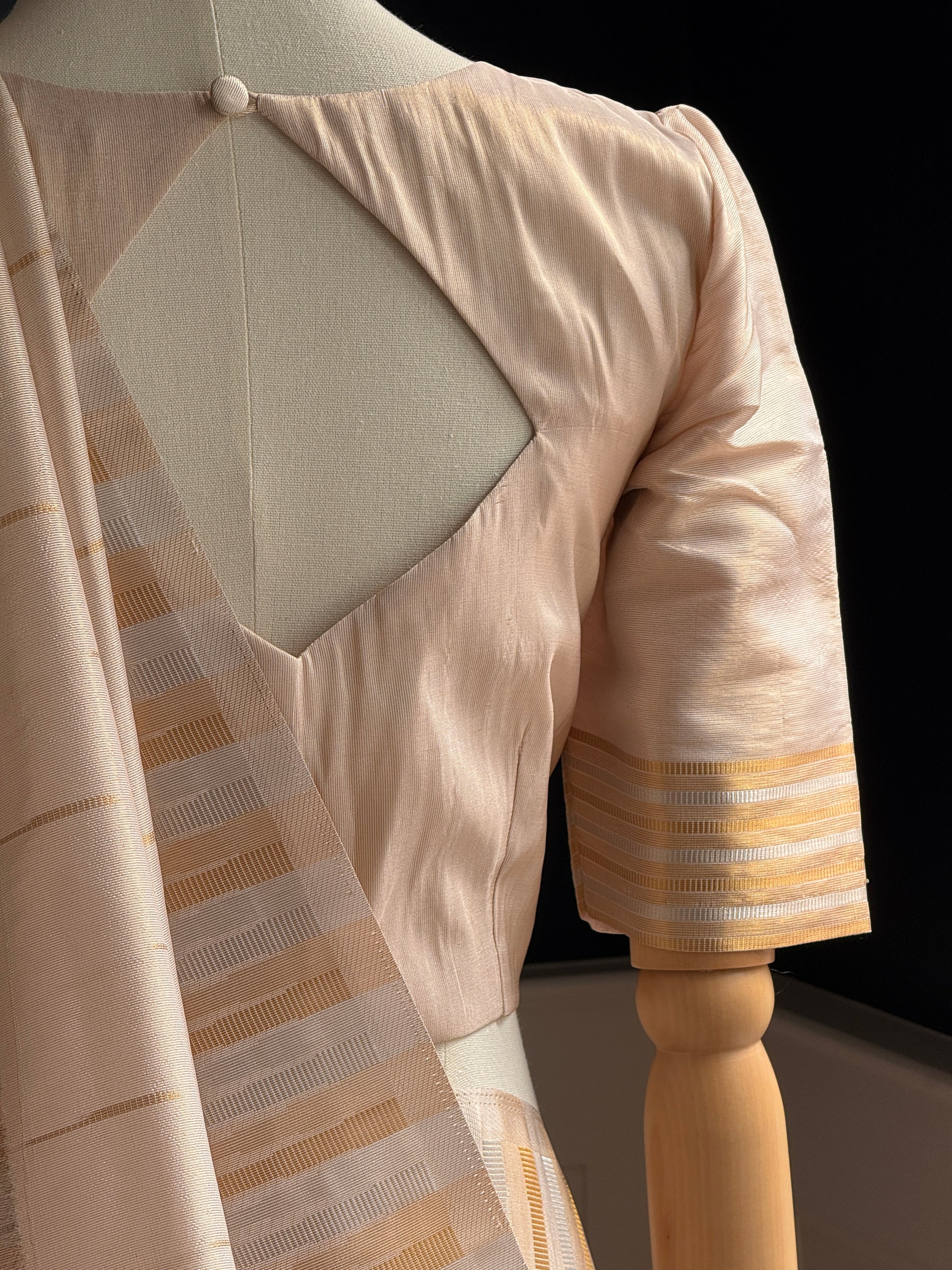 Blouse - stitched, fully lined Blouse with Zari lines and gold and silver along the sleeve