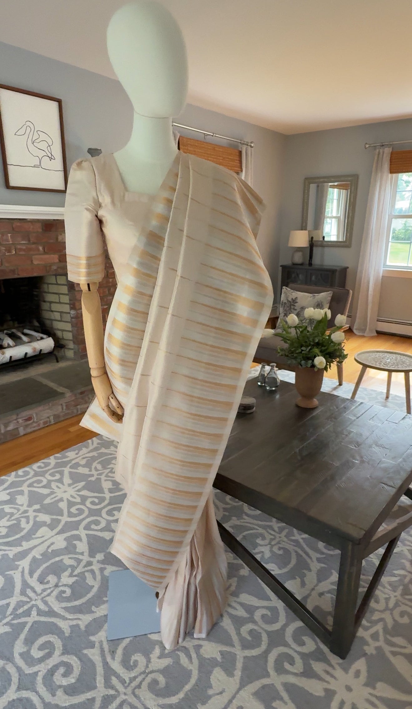 - Borders: Double-woven antique gold & antique silver on both sides