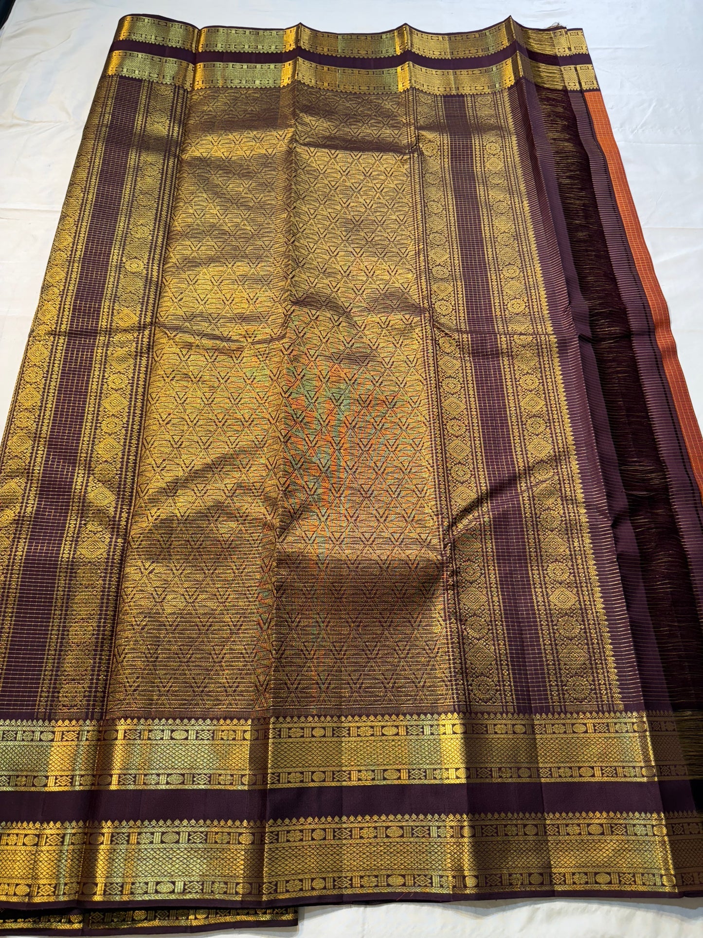 Rust Orange plum Kattam Rettapet — Pure Silk Kanchipuram Saree
