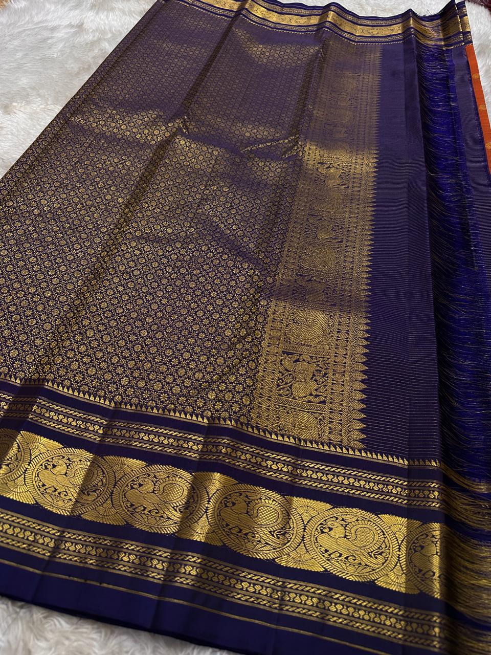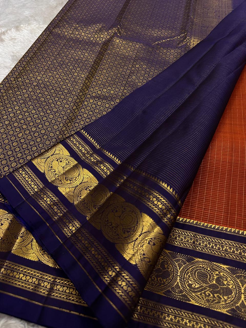 Rust Orange Neelam – Korvai Kanchipuram Pure Silk Saree