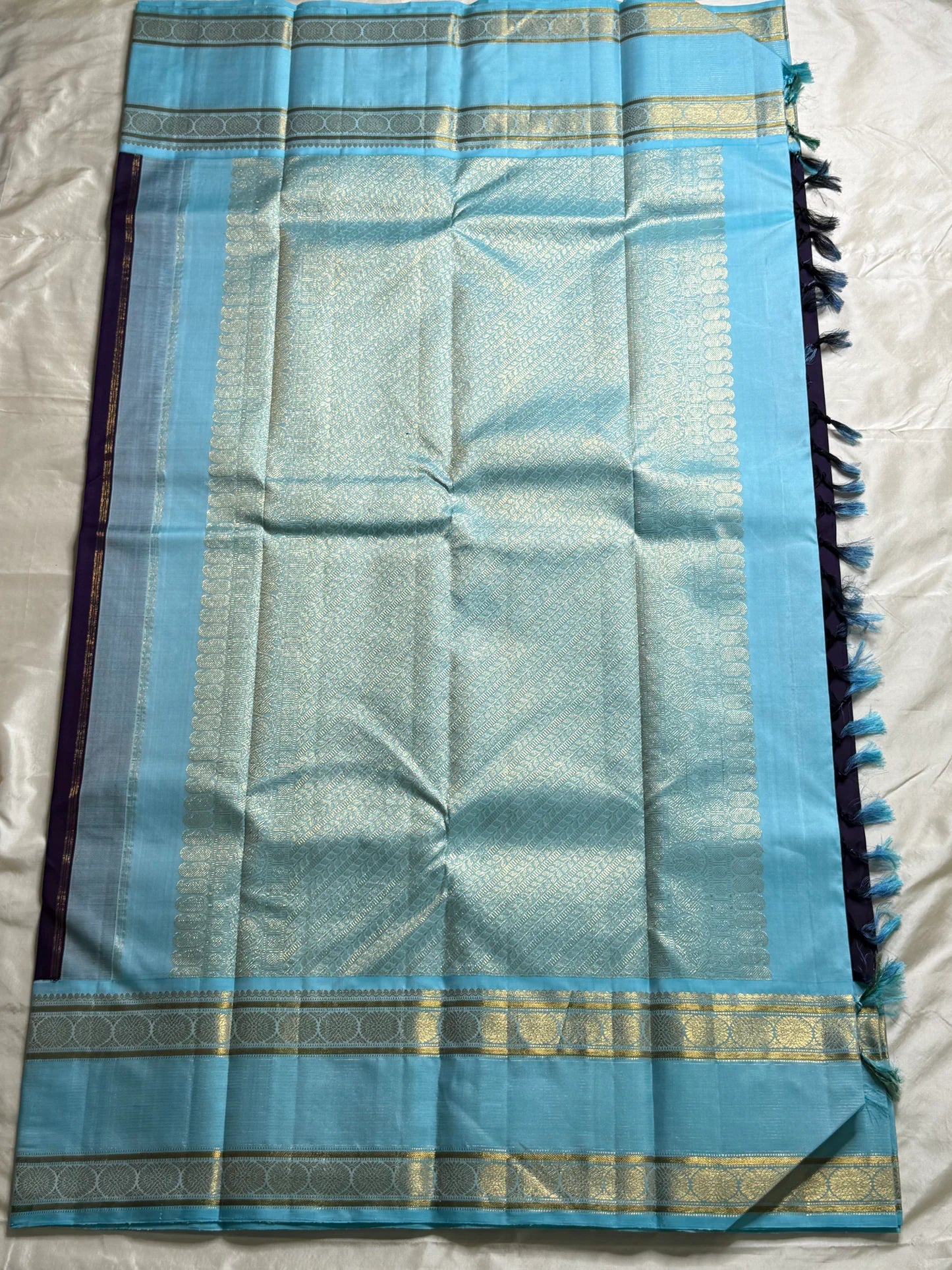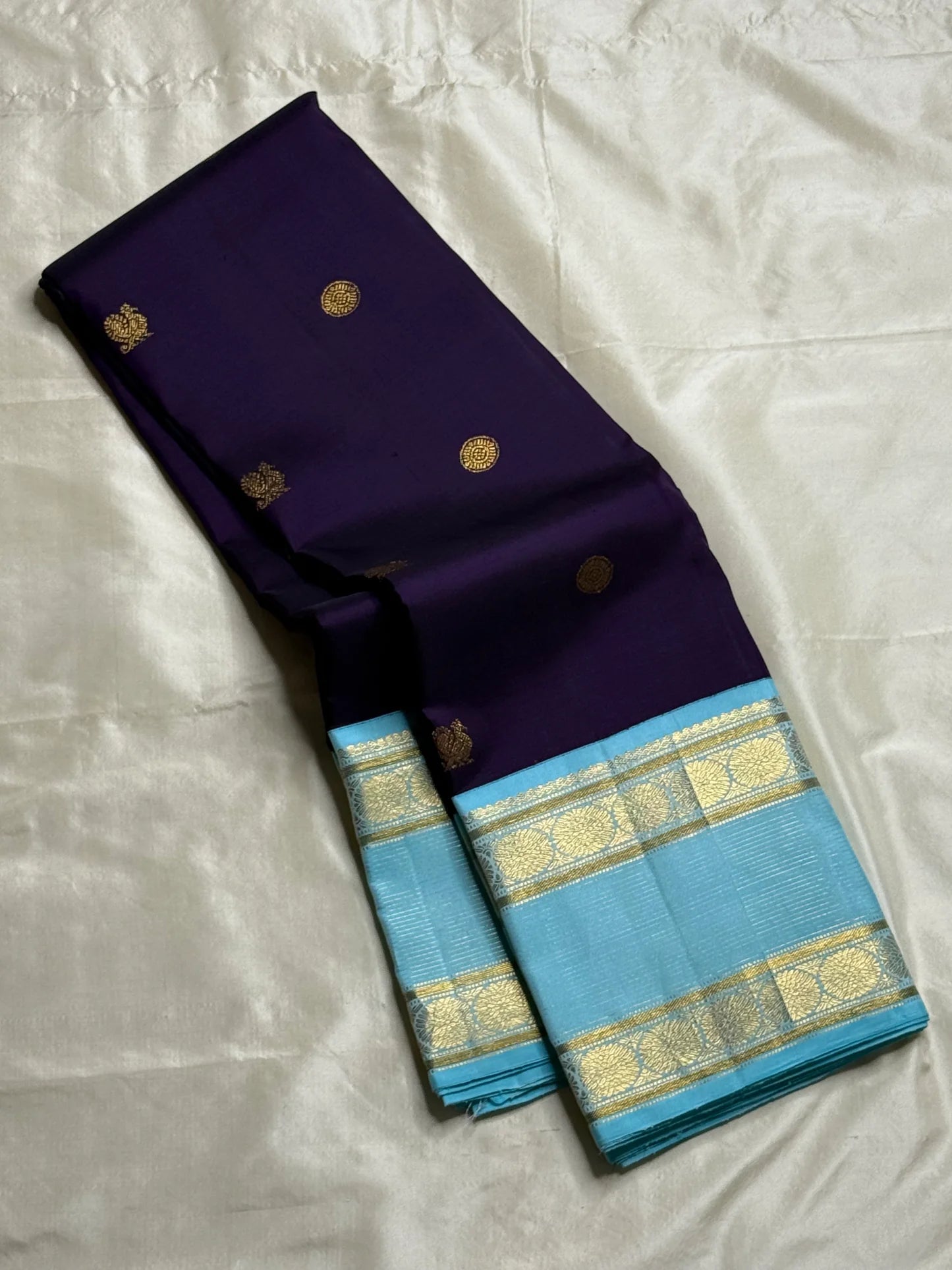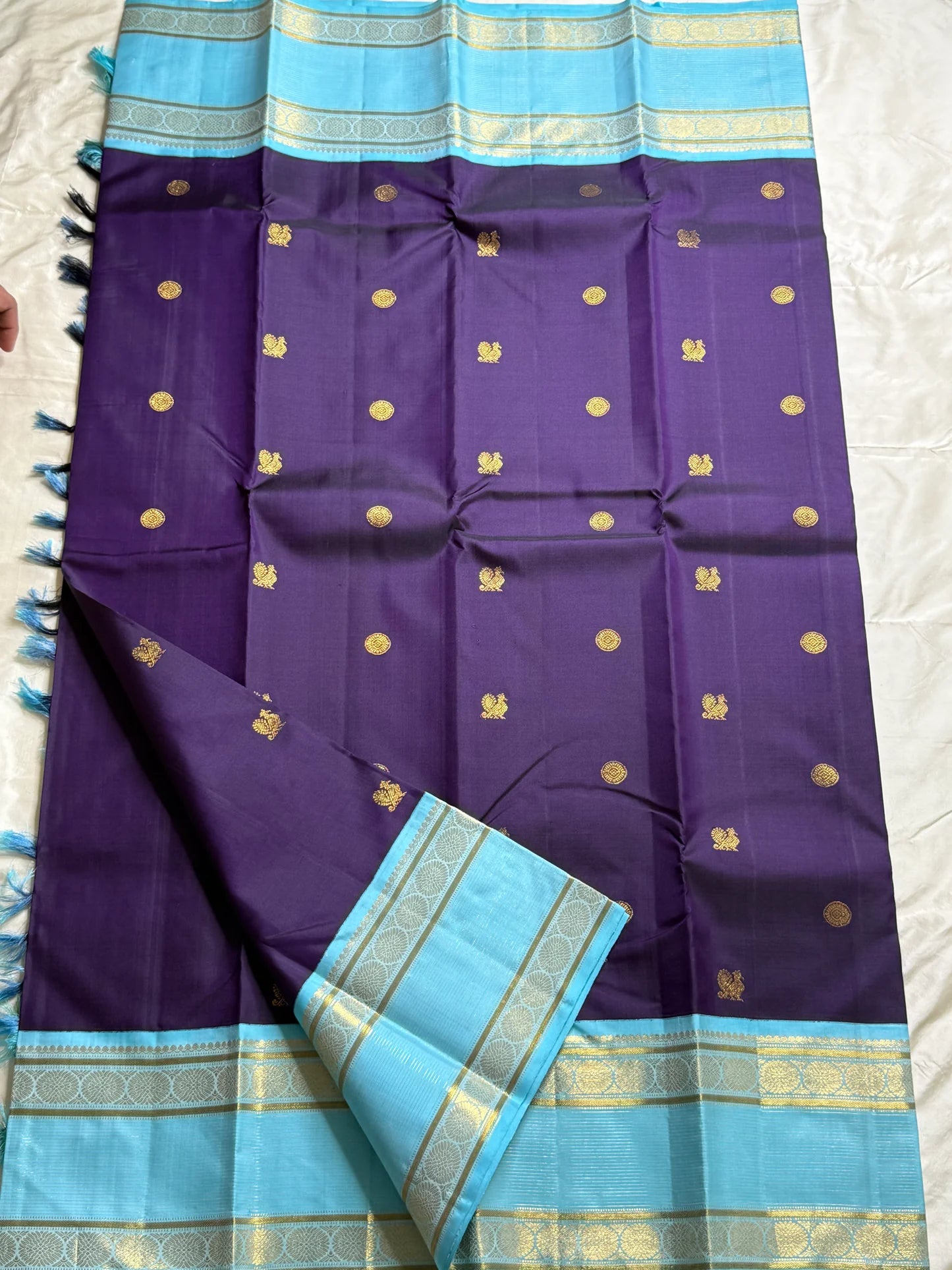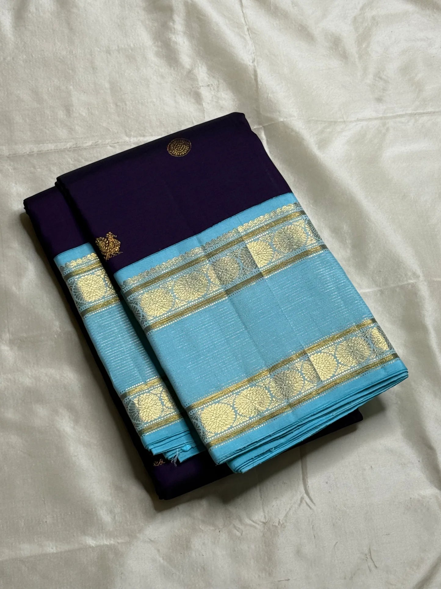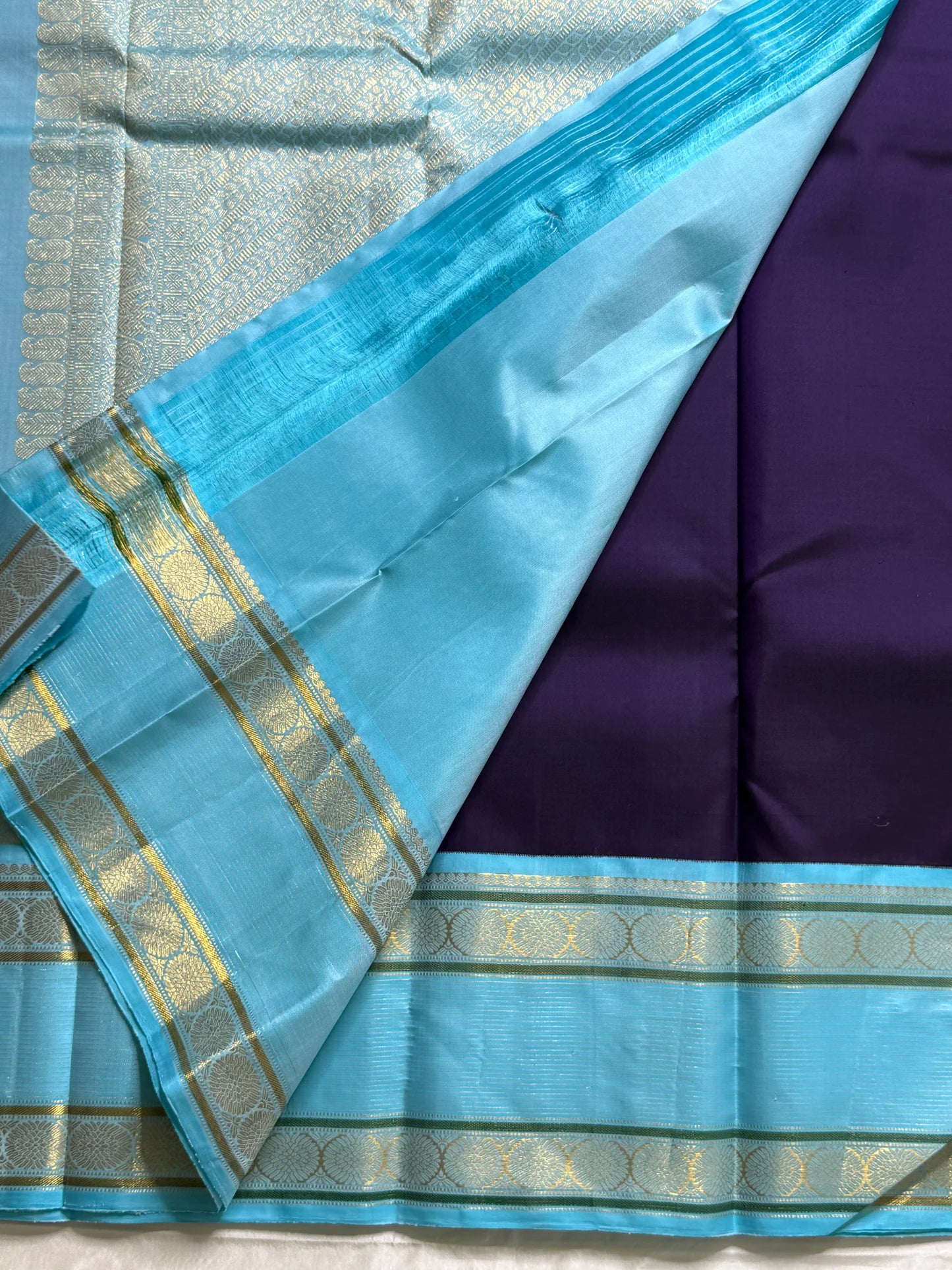 Color: Regal Purple with Aqua Blue Border & Pallu ✅