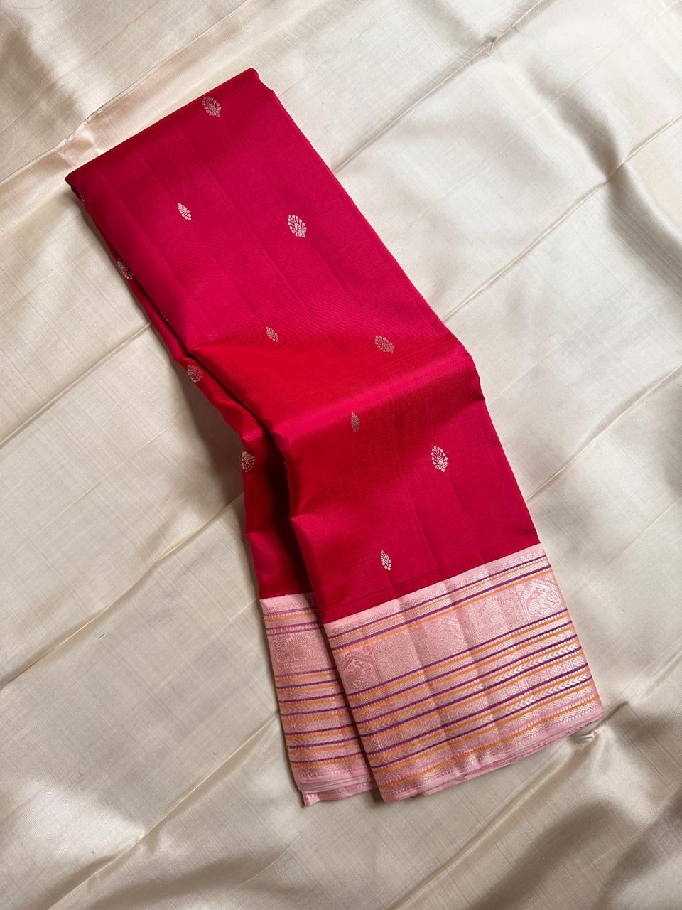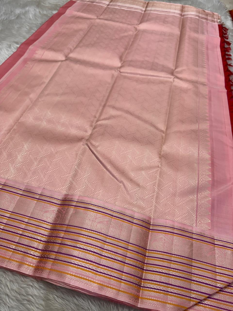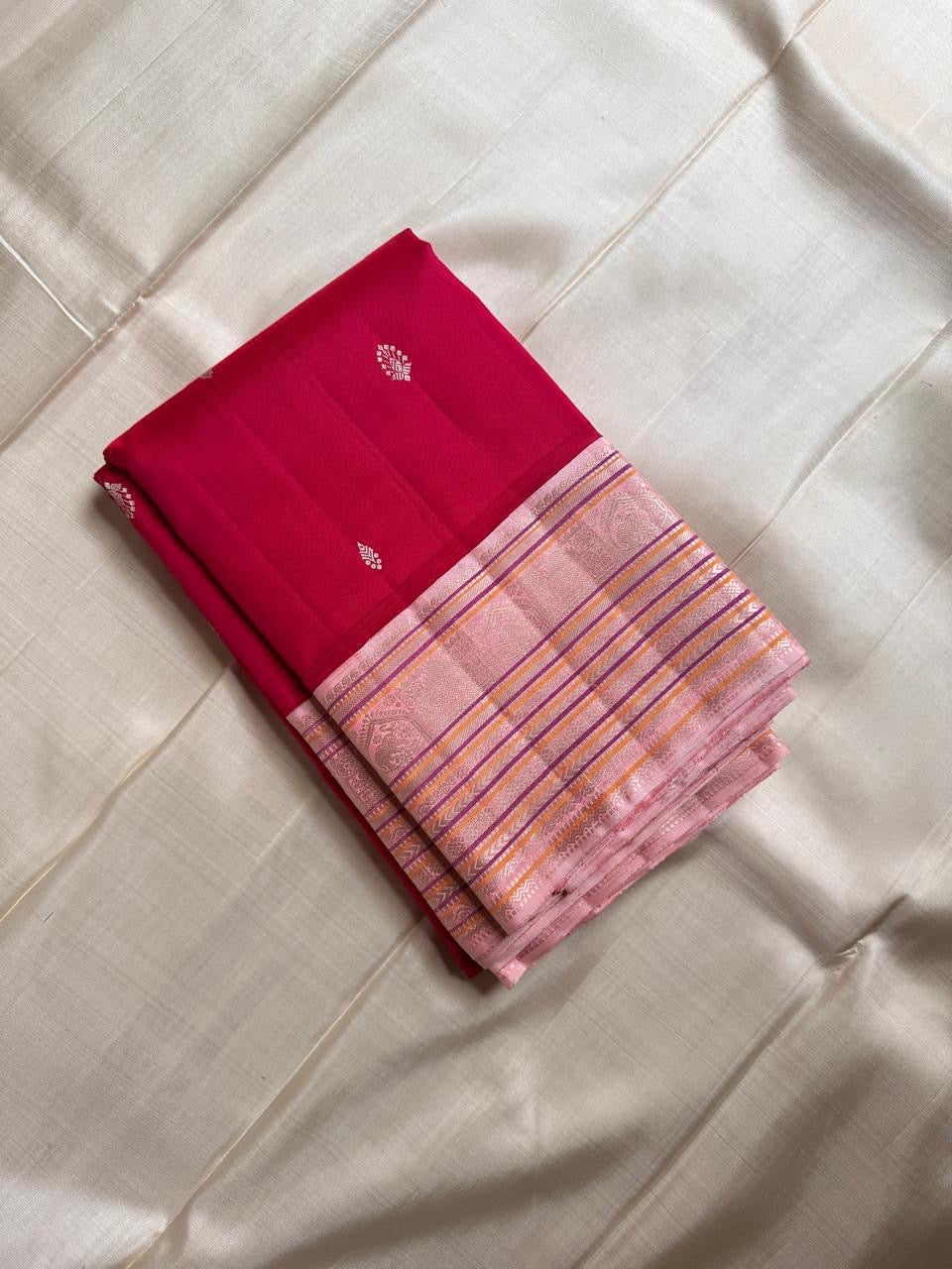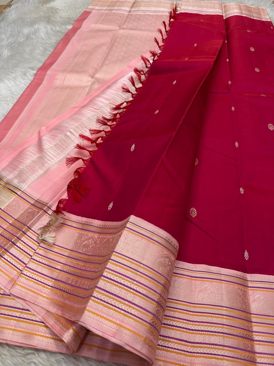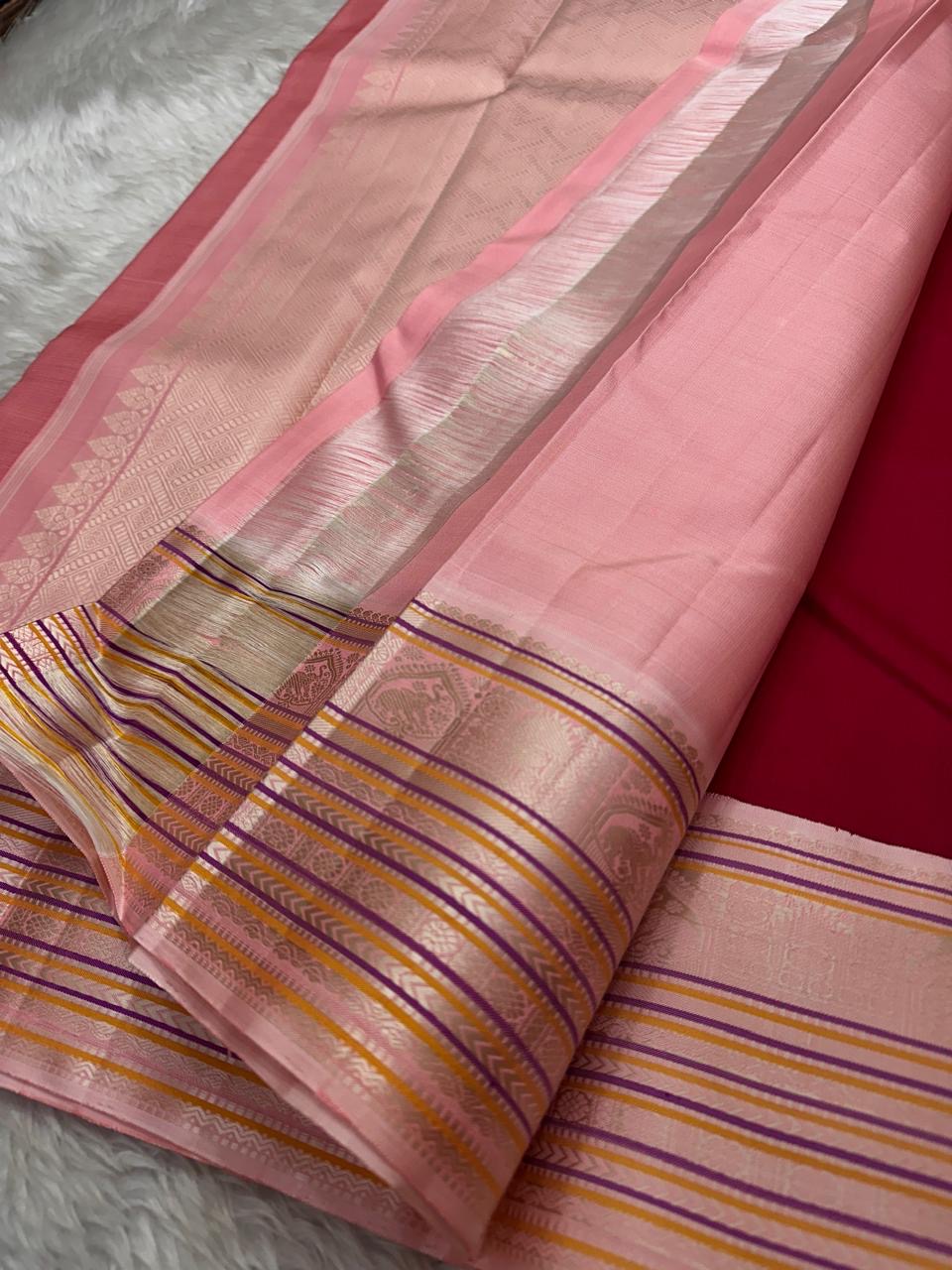 View compareCherry Red and pastel pink pure silk Kanchipuram
