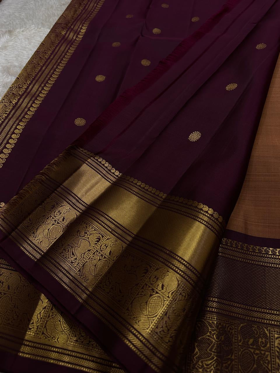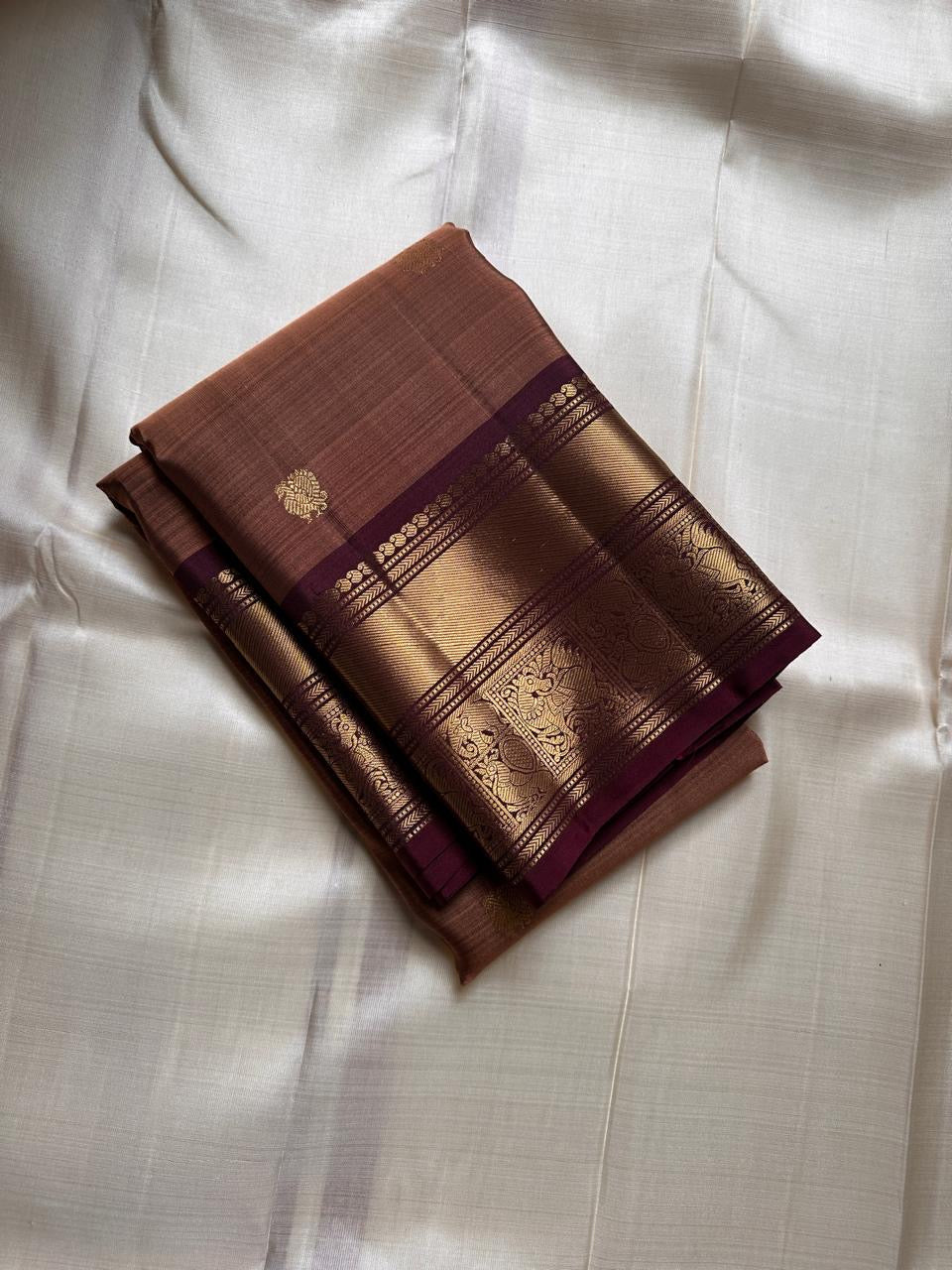 Biscuit Brown Glow – Korvai Kanchipuram Pure Silk Saree