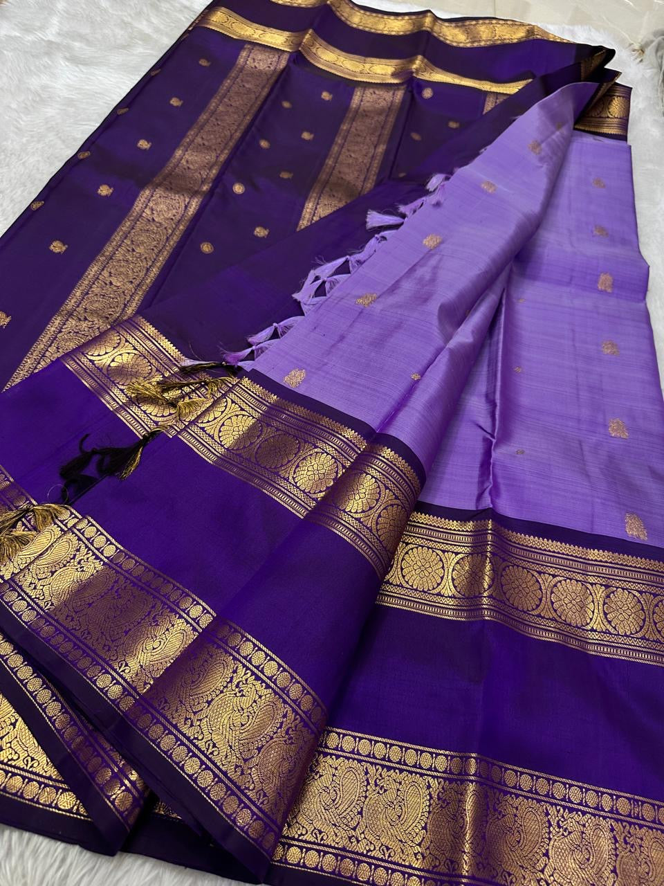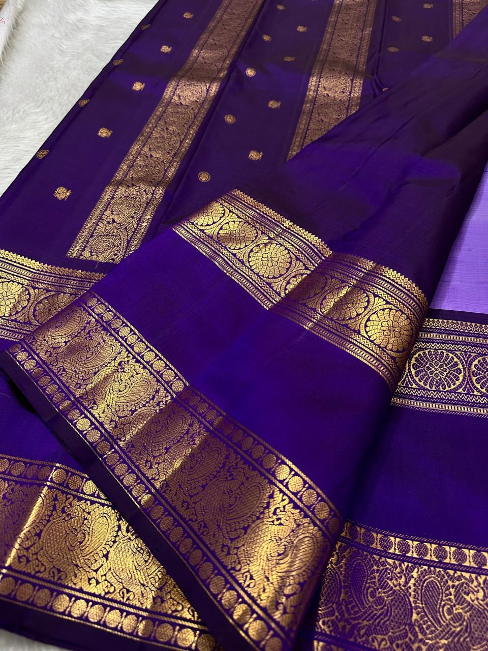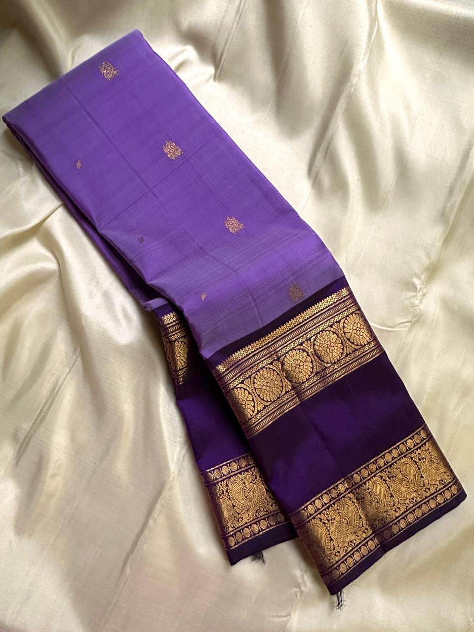 Amra – Lilac Butta Pure Kanchipuram Silk Saree with Rich Purple Rettapet Ornate Border & Pallu, Handwoven in Kanchipuram (Silk Mark Certified)