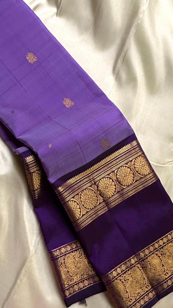 Amra – Lilac Butta Pure Kanchipuram Silk Saree with Purple Rettapet Ornate Border & Pallu (Silk Mark Certified, Handloom)