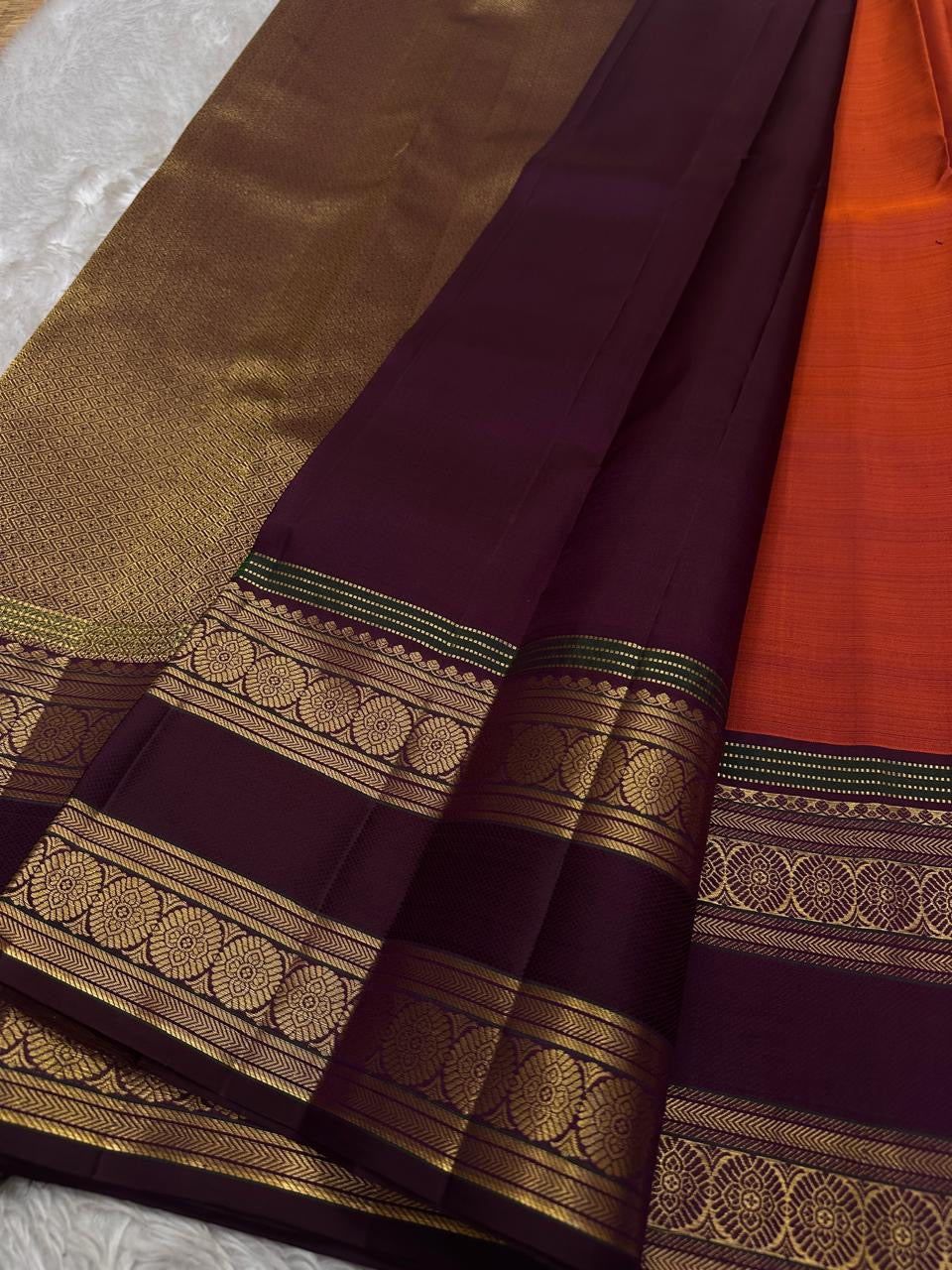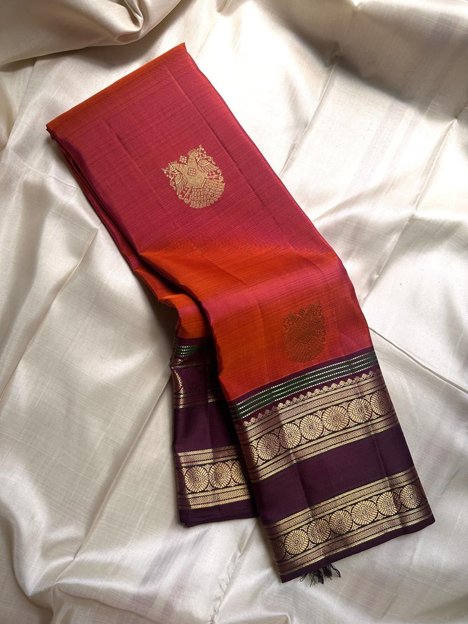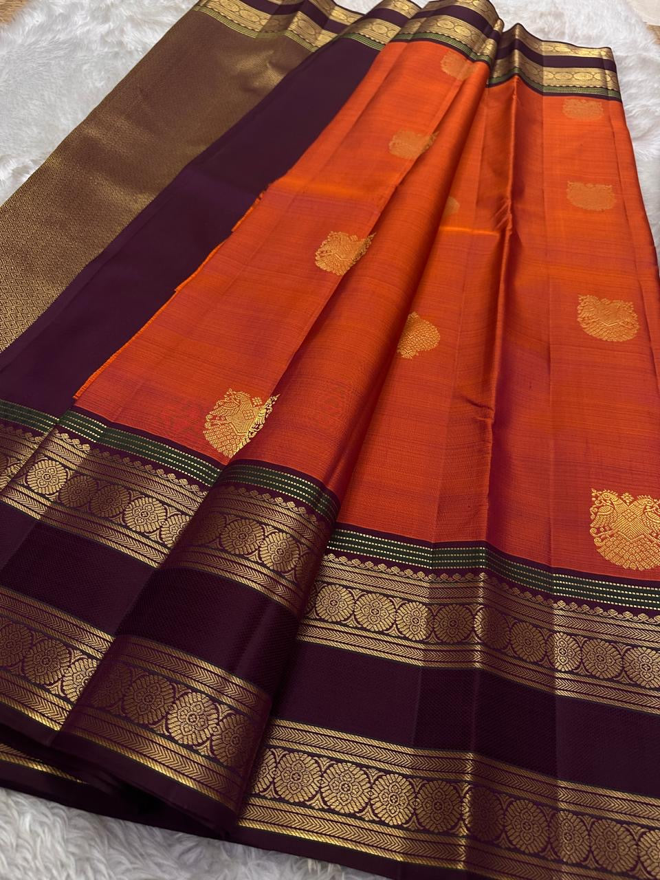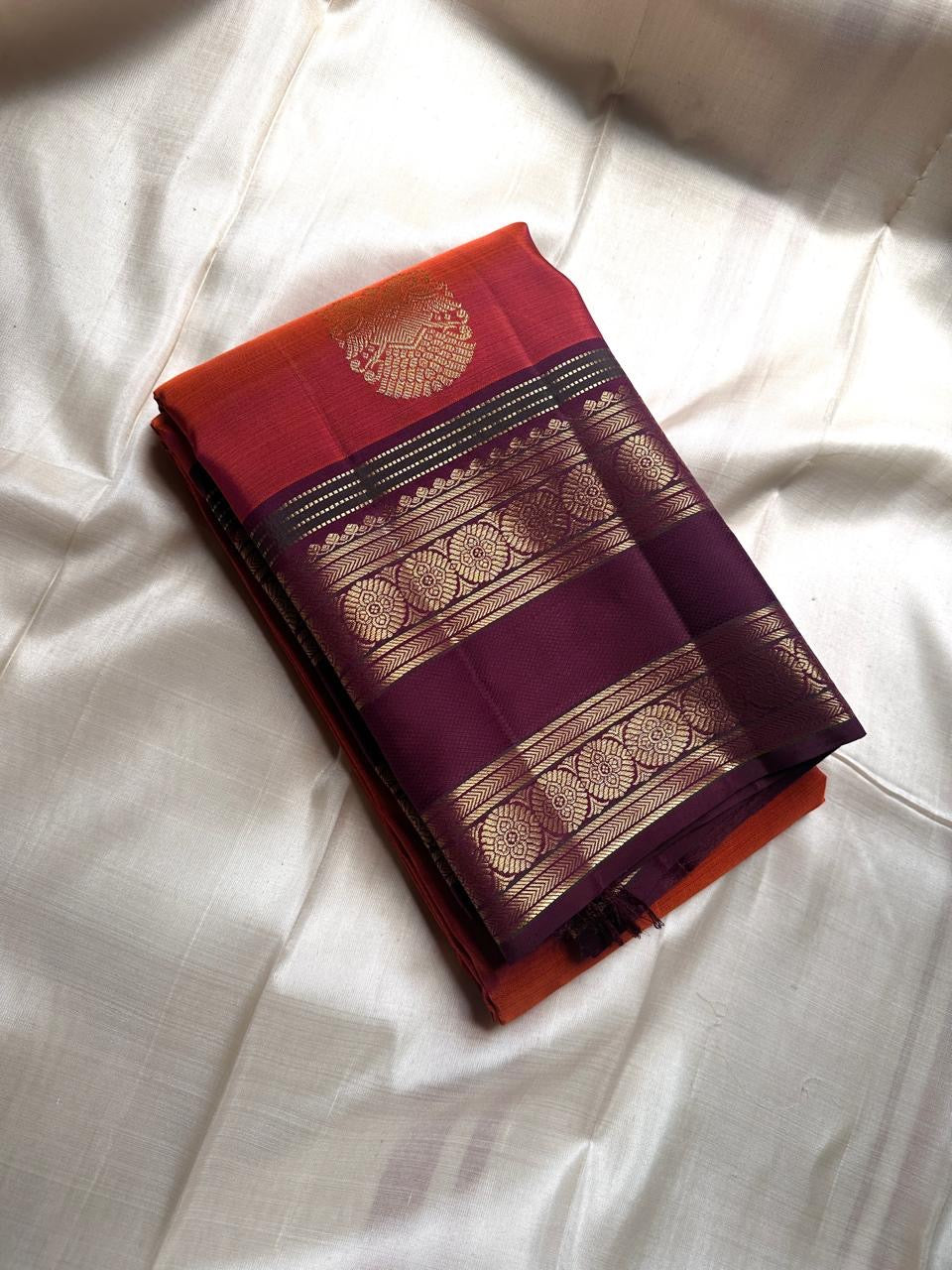 ✨ Orange rust body with zari Gandaberunda adai motif 🍁🧡