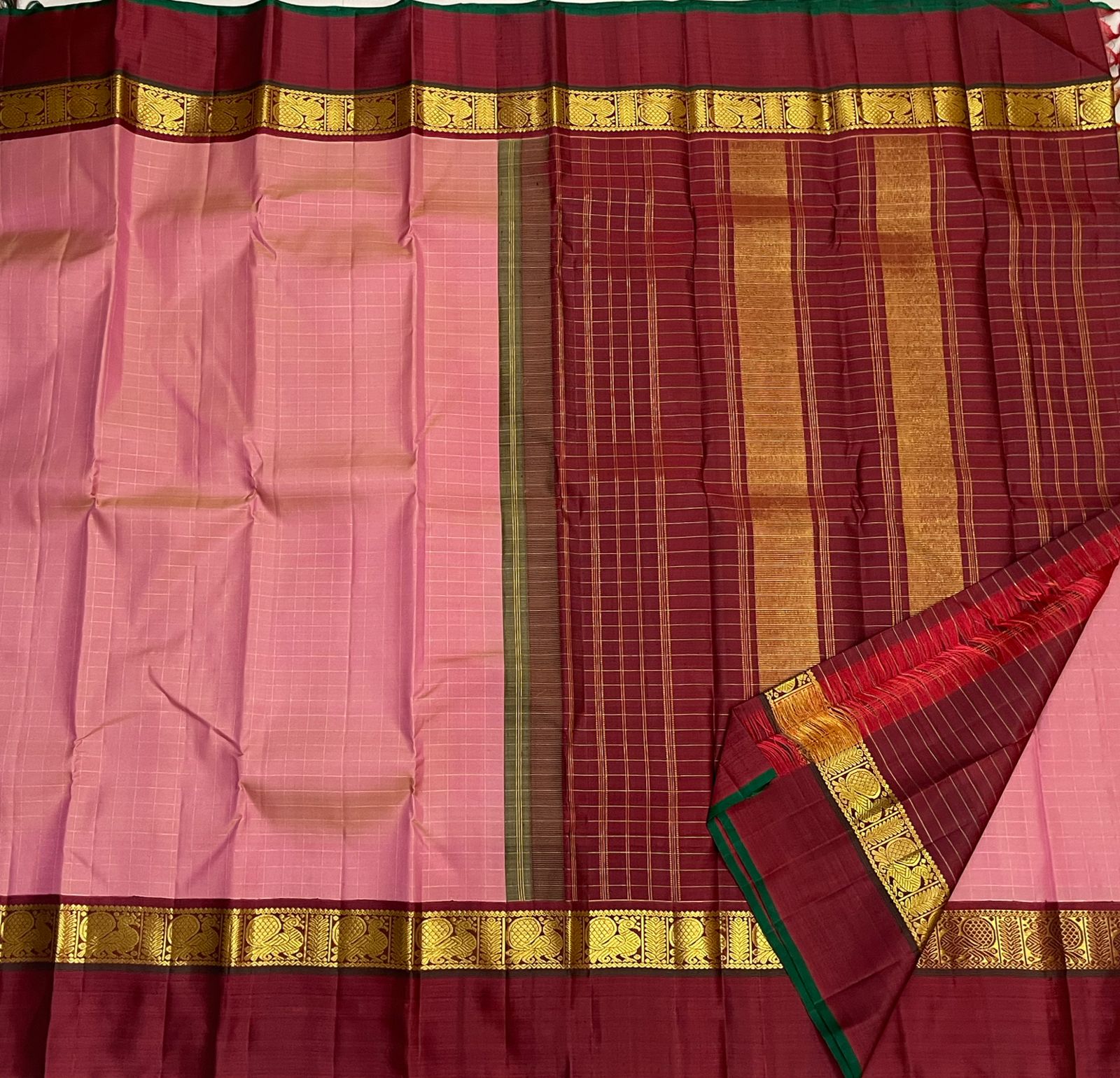 • Dusty Rose Kattam Body with Arakku-Maroon Korvai Border