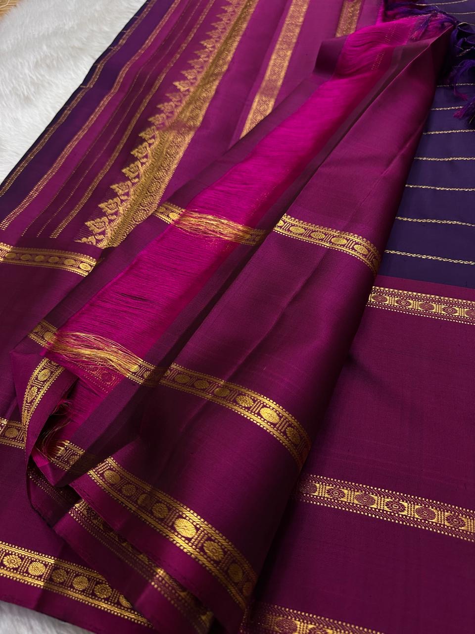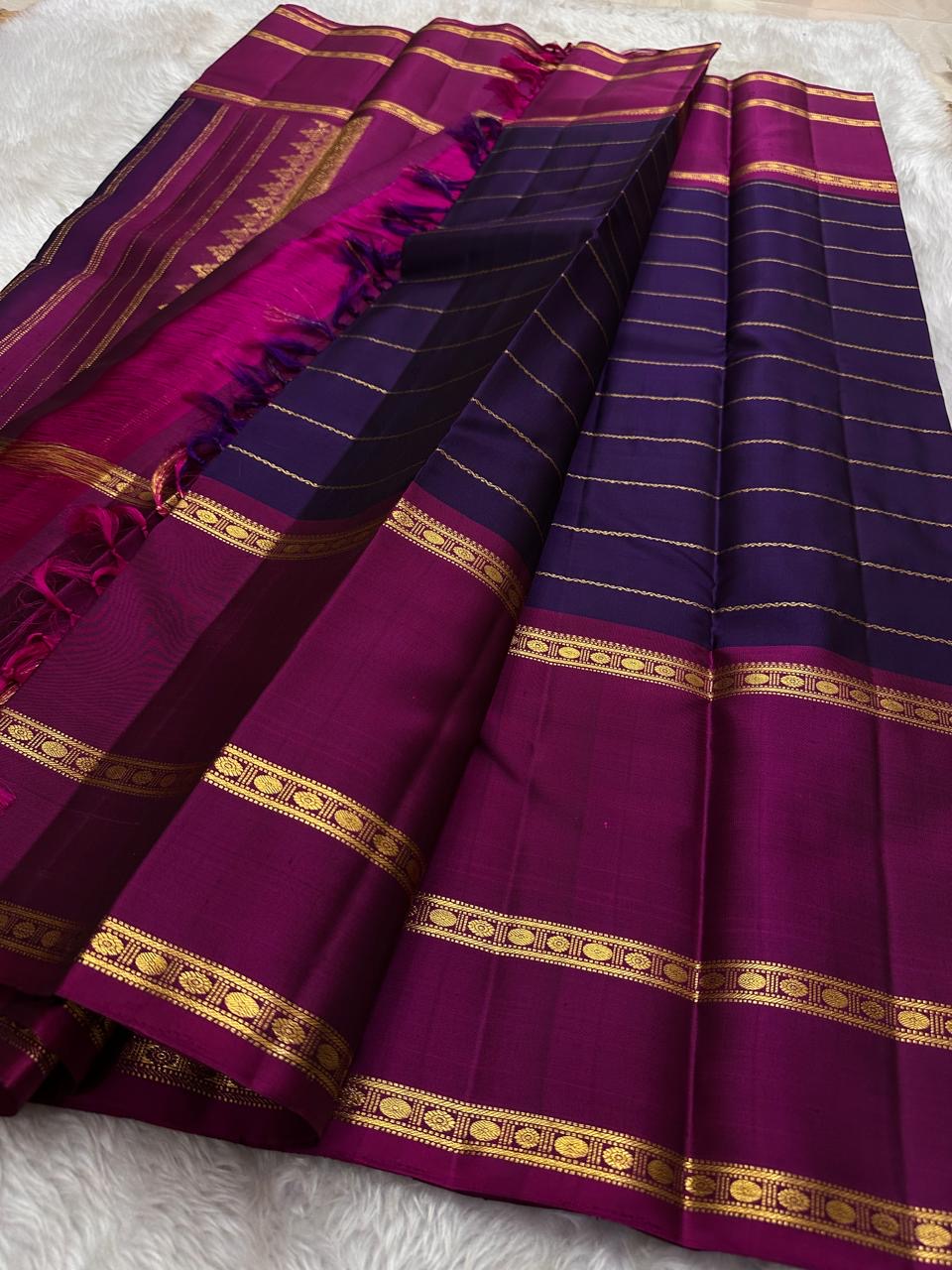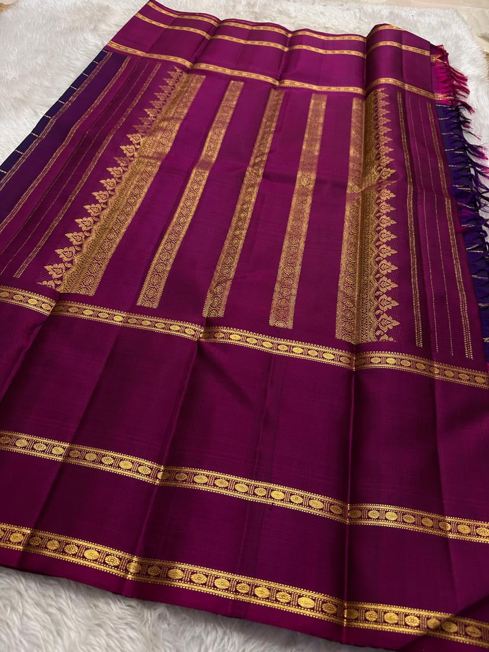 Pure silk kanchipuram  deep purple and dark violet magenta shot  velthari rudhraksh border seer Pallu