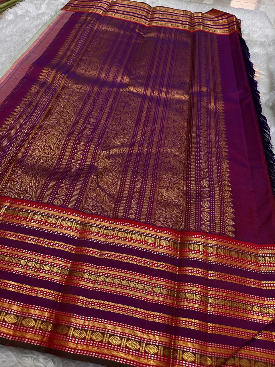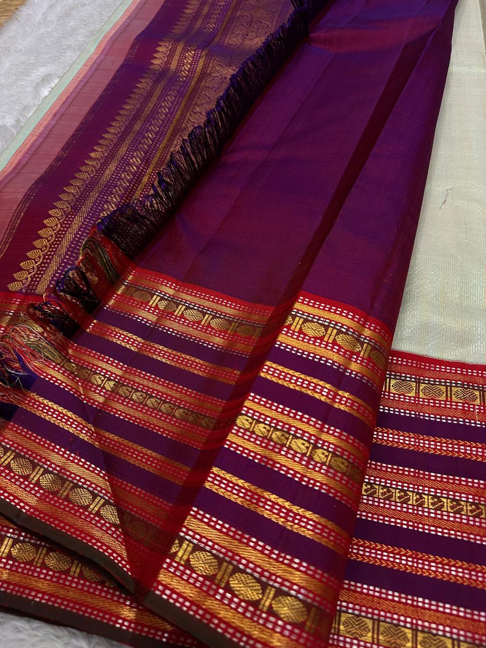 - Border – Ornate Varisaipet design in striking purple & red contrast, detailed with Thandavalam zari.