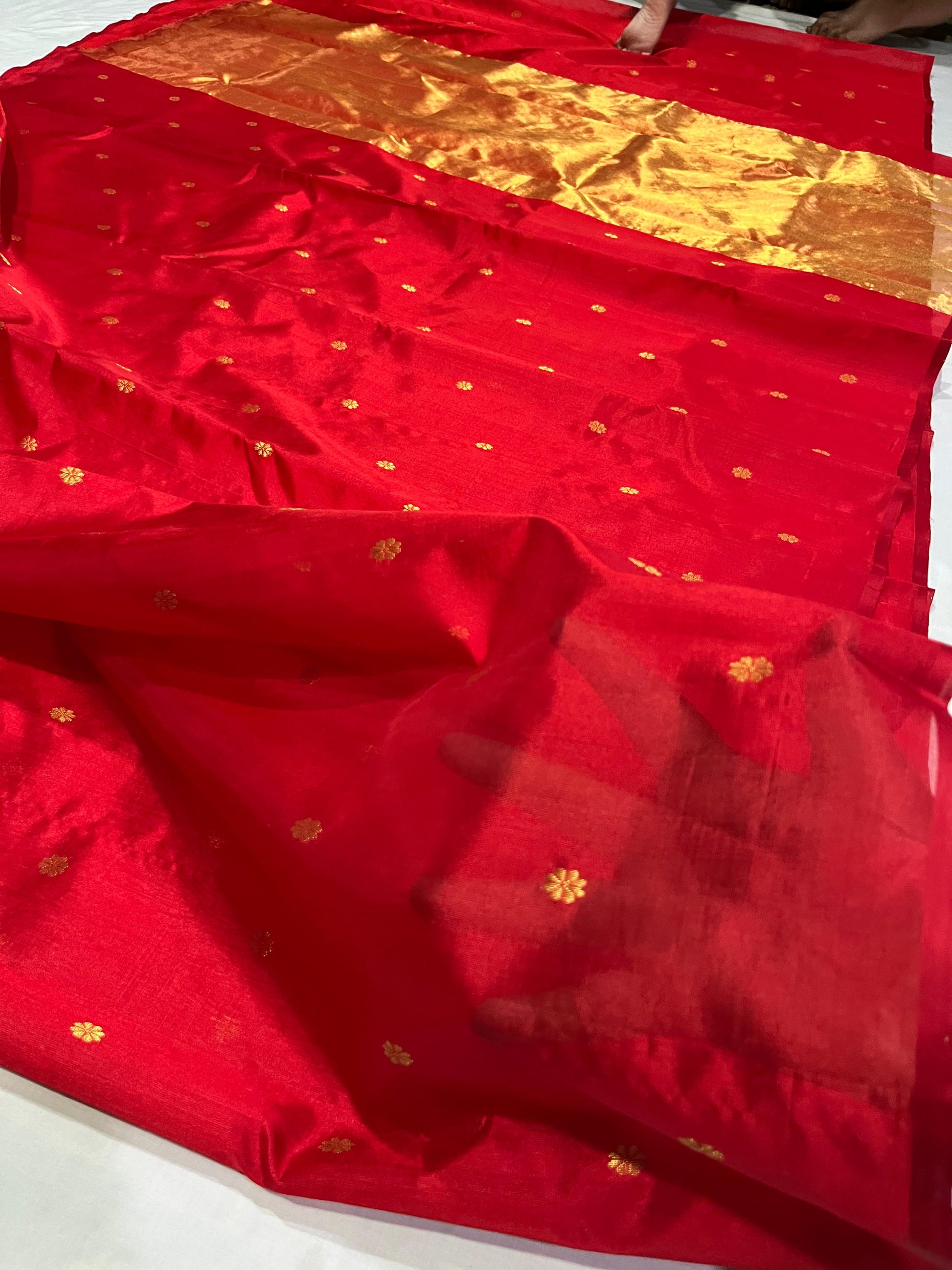 True Red Pure Silk Chanderi Saree with Floral Butta and Traditional Zari