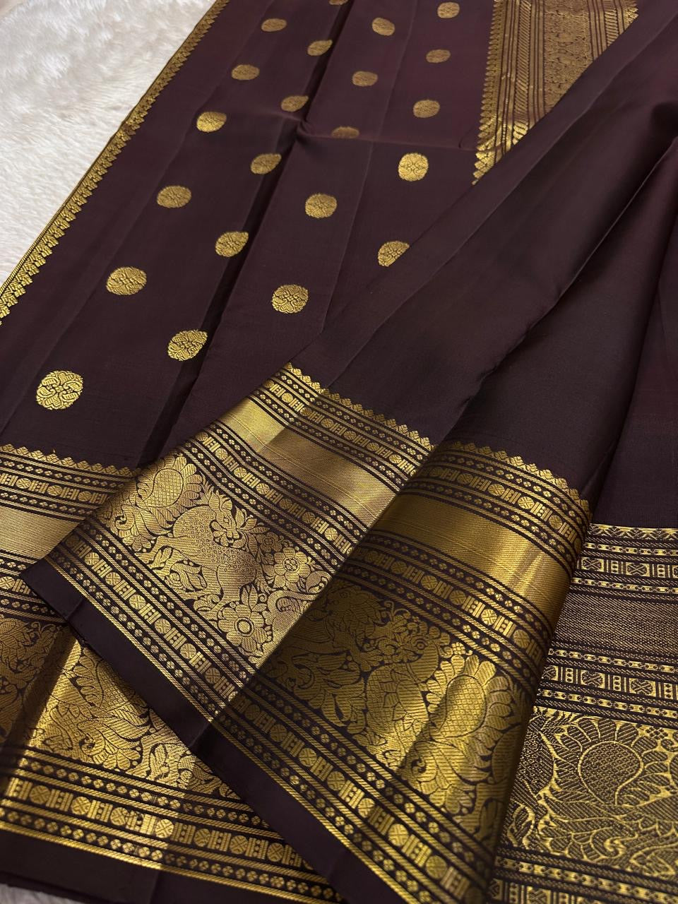 An elegant ivory Pure Kanchipuram silk saree woven in a refined kattam check, accented with neatly spaced zari buttas that catch the light with every movement. A rich tomato red border frames the weave with intricate zari woven patterning and fine horizontal bands, finished with a classic temple-edge detail at the transition. The lustrous tomato red pallu completes the composition with detailed zari work, creating a timeless statement for weddings, festive occasions, and heirloom wardrobes.Pure Kanchipuram Silk SareeSilk Mark Certified ✅Fall & Pico Done ✅Blouse Stitching Available ($30) ✅Free Shipping within USA ✅Ships in Two Weeks from New Jersey, shipped all over the USA ✅✨ Explore MoreBrowse more pure Kanchipuram silks → Understand authenticity with our Silk Mark Certification → Meet the artisans who create these masterpieces →