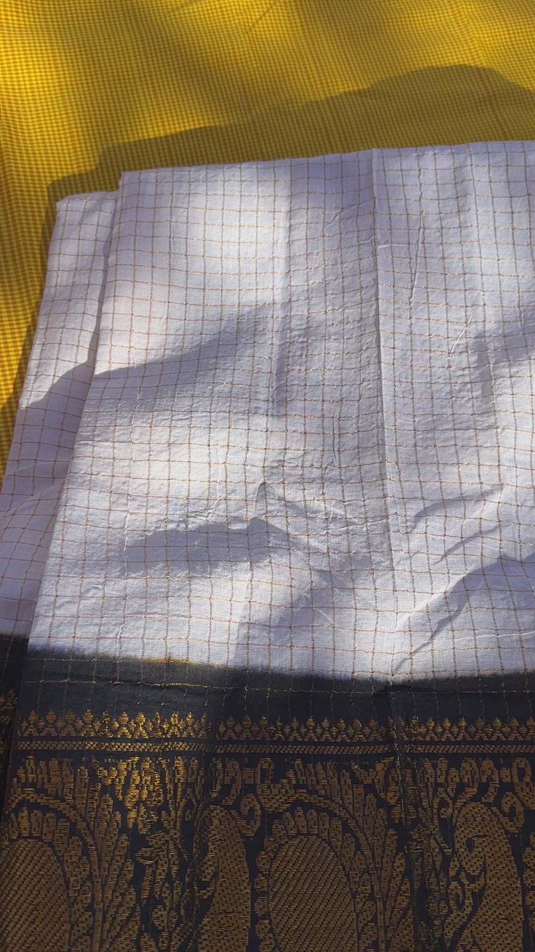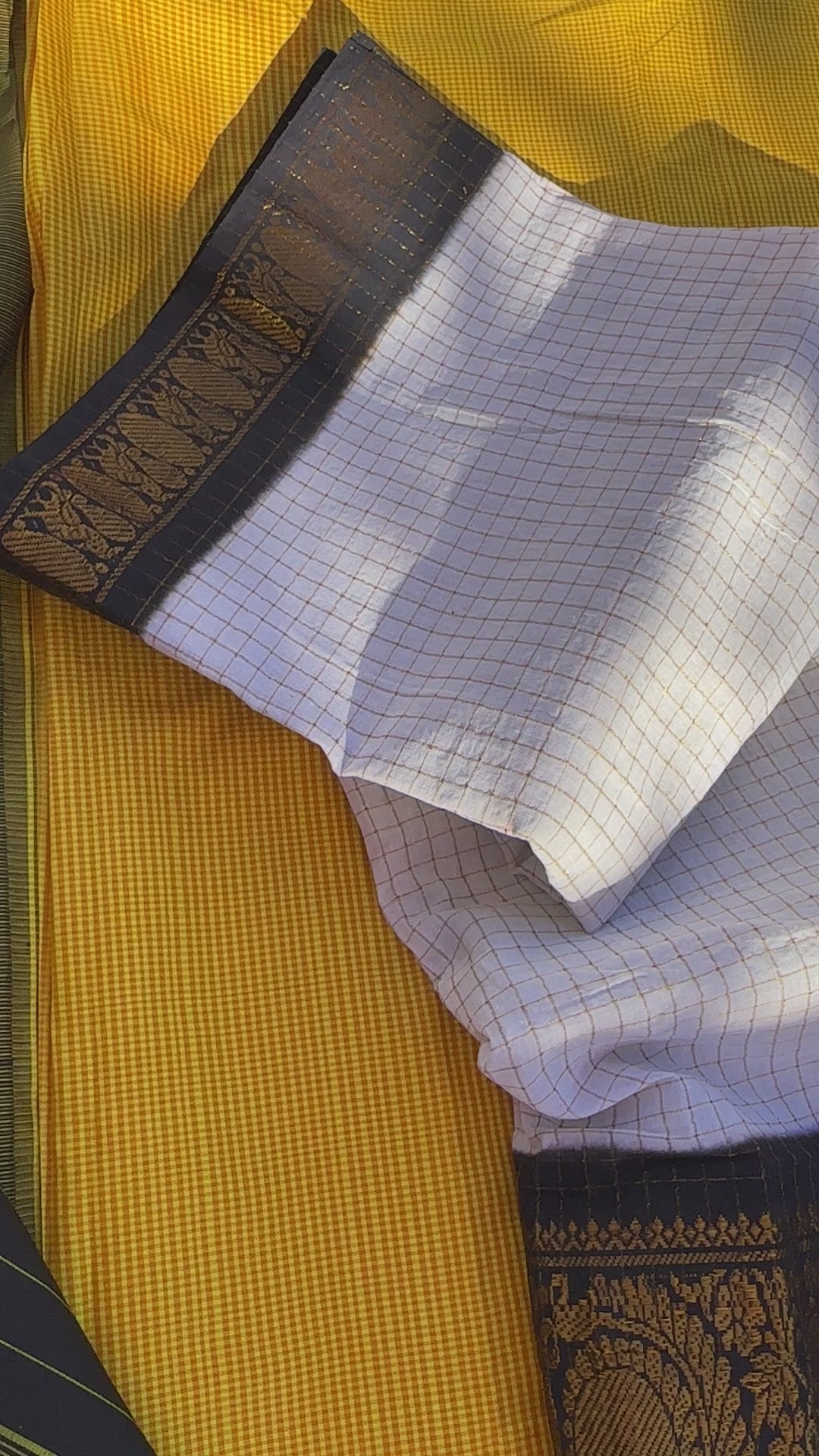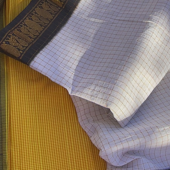 • Traditional handwoven Sungudi in striking black-and-white contrast