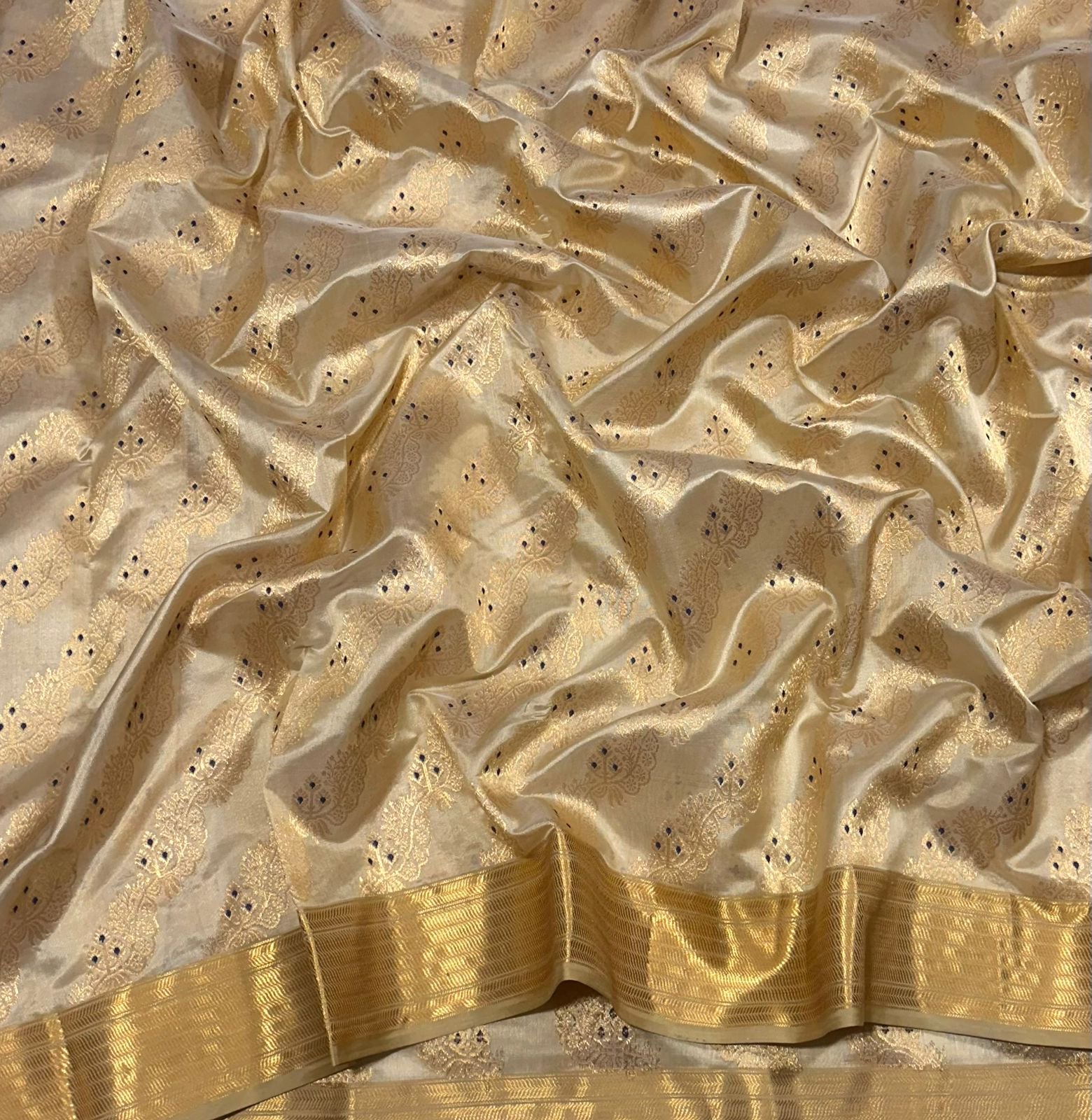 Gold pure silk chanderi with silk thread and zari butties