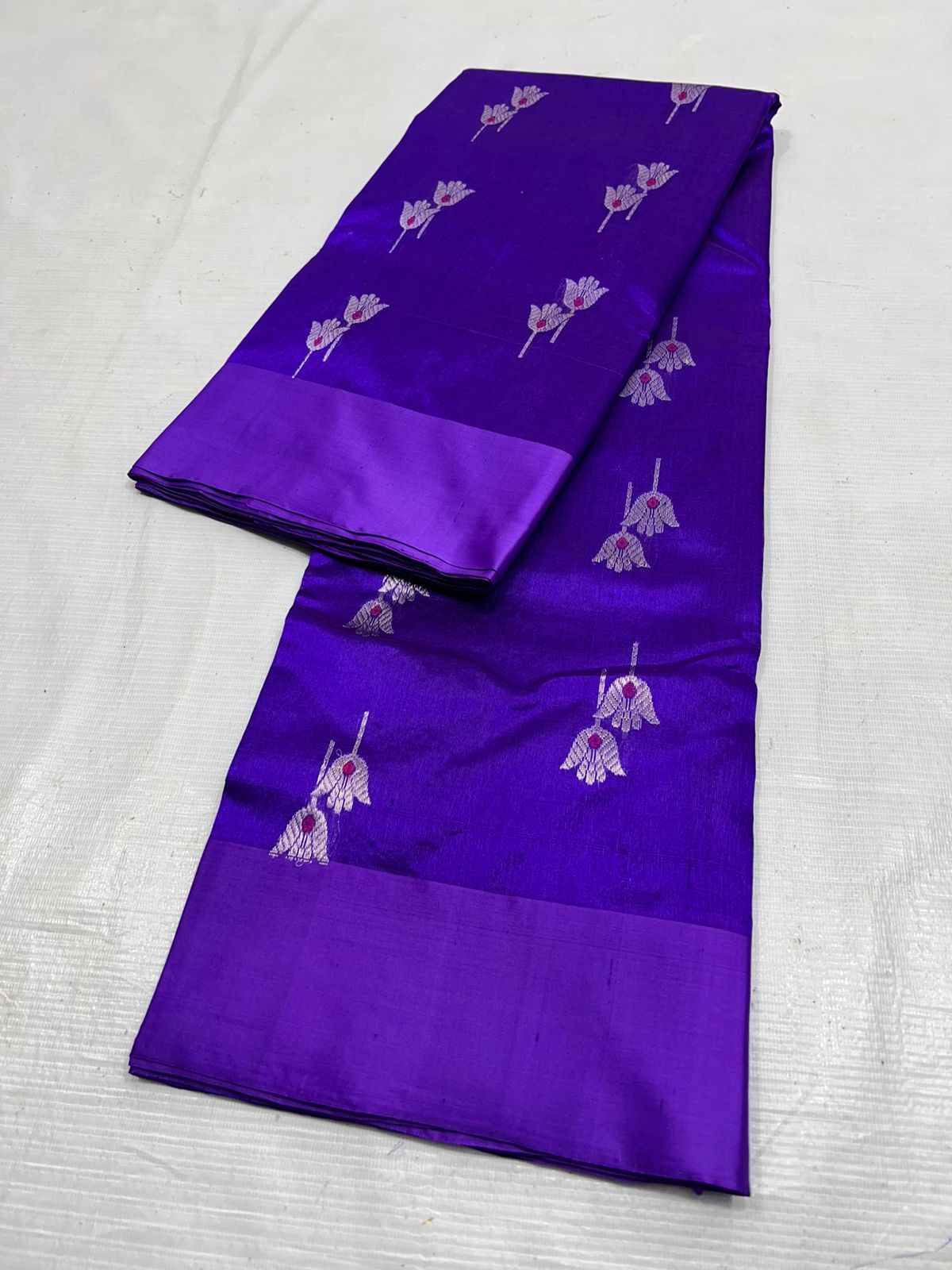 Pure Silk Chanderi (Royal Violet with gold Silver Lotus Buttas & Silver Tissue Pallu)